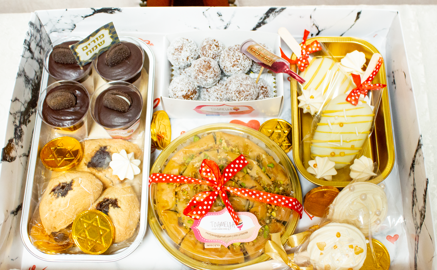 אפשרות להזמין כל קינוח ממבחר המוצרים בחנות בעיצוב אישי וייחודי ובכשרות מהודרת. (בהזמנה מראש בלבד)